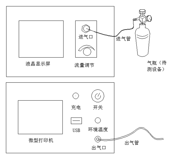 正面板由液晶屏、進(jìn)氣口和流量調(diào)節(jié)組成
